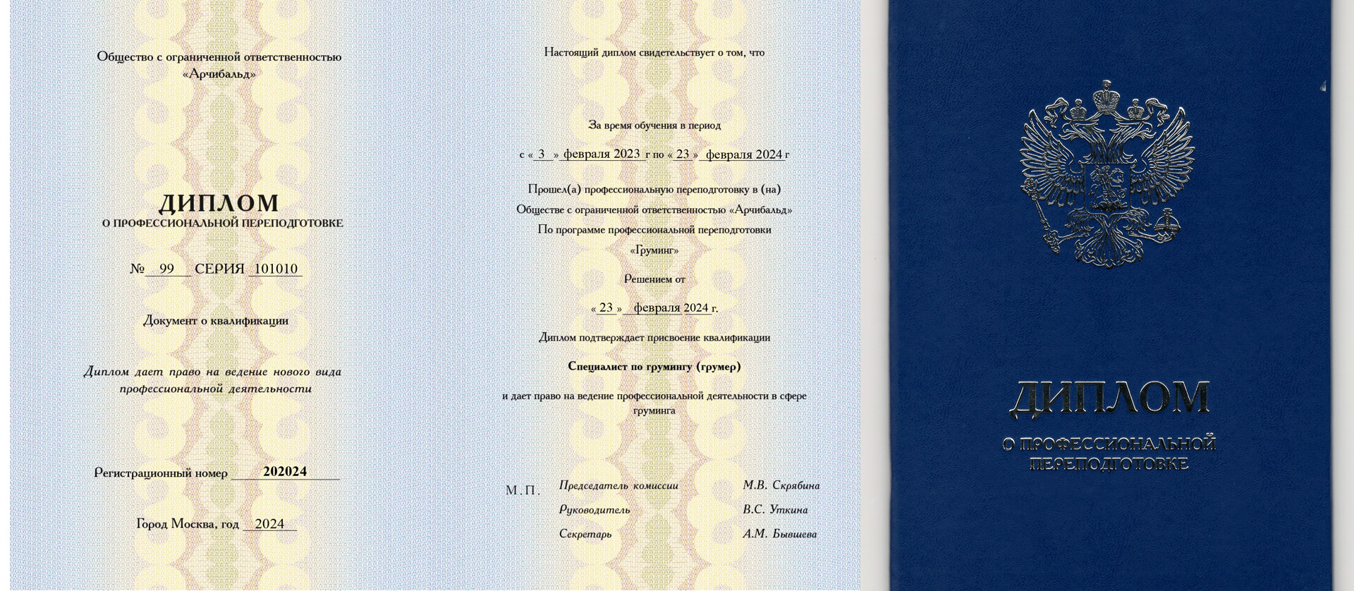 *Академия груминга «Арчибальд» является лицензированным учебным центром, которая обязана вносить в ФИС ФРДО данные слушателях, успешно прошедших дополнительное профессиональное образование