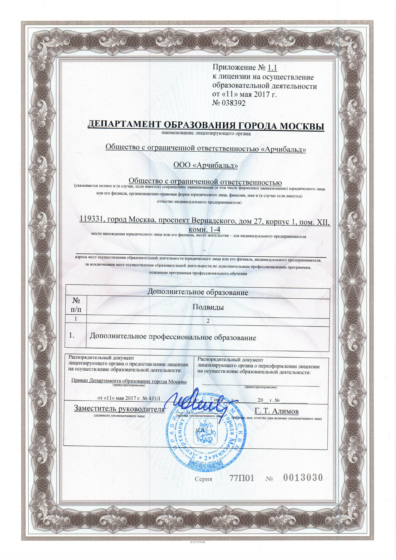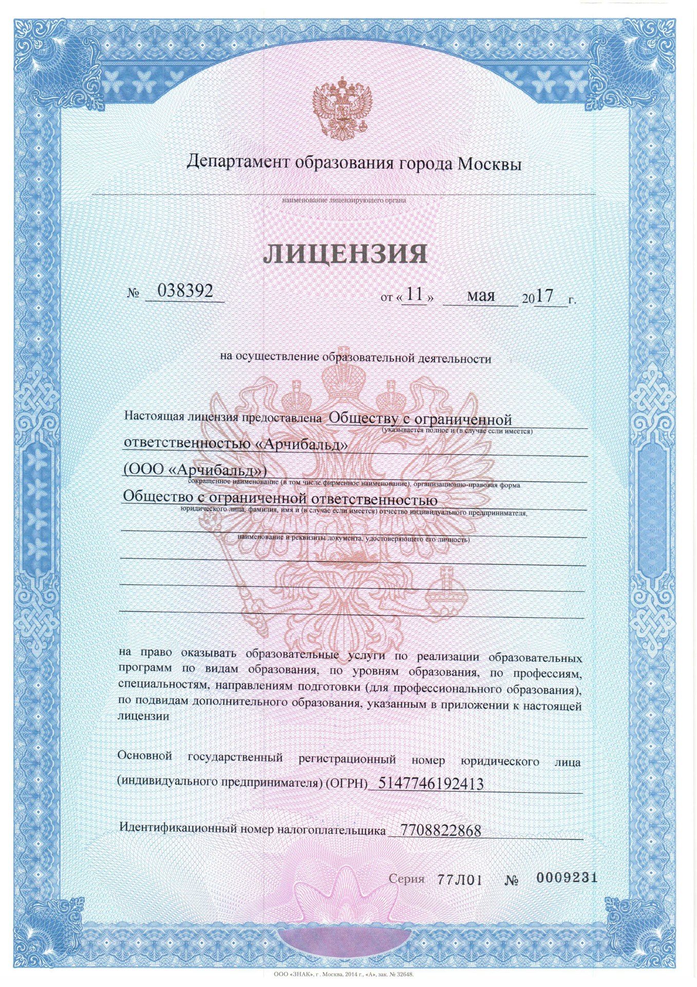 Деятельность Академии "Арчибальд" подтверждена лицензией Департамента образования города Москвы
